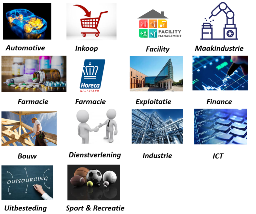 Onderstaande de branches waarin ik direct of indirect werkzaam ben geweest.